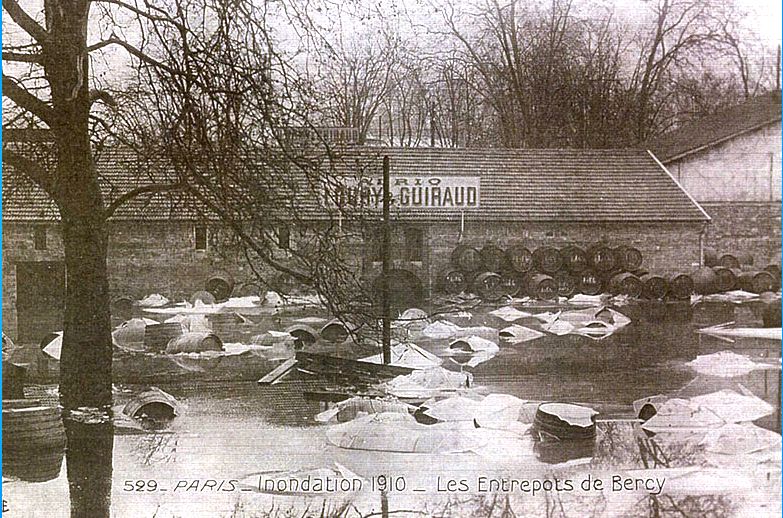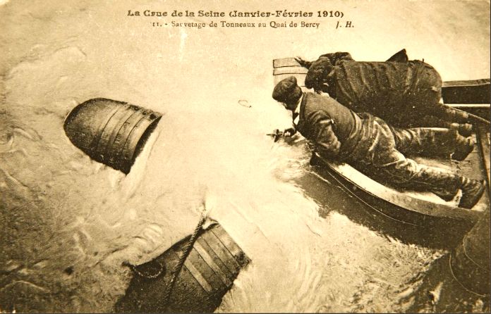 « Les entrepôts de Bercy sont totalement inondés dès le 22 janvier ; un lac de 5 mètres de profondeur s’y forme, et les tonneaux dérivent dans une forte odeur d’alcool« , nous informe paris.fr
