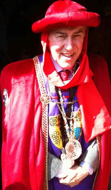 M. le Maire, fidèle protecteur de la Confrérie nous avait rejoint, on en était au vin d’honneur quand, coup de tonnerre dans un ciel serein,on annonça l’arrivée de « l’idole des idoles« .