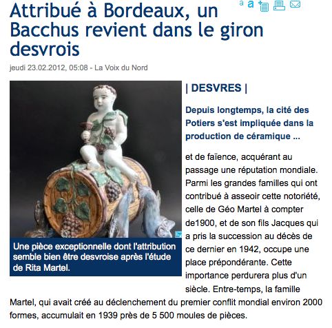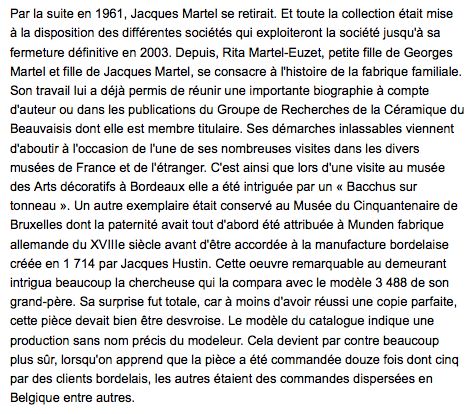 Le Bacchus XVIIIème de Munden du Musée du Cinquantenaire de Bruxelles est la source d’inspiration du Bacchus de Géo Martel qui se trouve au Musée des Arts Décoratifs de Bordeaux et non pas un autre exemplaire du Bacchus de Géo Martel comme il est écrit.