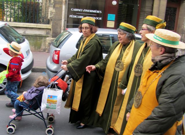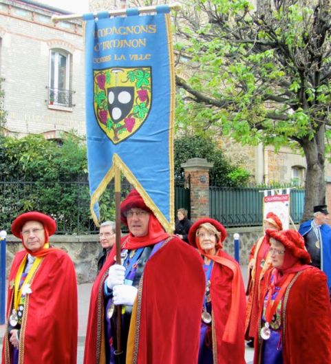 «A Clamart, à Clamart, il y a du bon vin, du bon vin de raisin. » Le refrain est entonné en chÅ?ur dans la salle du conseil de l’hôtel de Ville, transformée samedi après-midi en temple de Bacchus empli de fidèles aux toges colorées venus célébrer le grand chapitre de printemps de la confrérie du Clos de Clamart. Le temps d’introniser en grande pompe quelques nouveaux membres, et même un grand chevalier d’honneur, Gérard Aubineau, adjoint au maire délégué du quartier de la gare. C’est là que s’est tenu l’événement de ce millésime 2012 : le baptême du pont des Vignerons, le nouveau nom du pont Brissard, en hommage à la tradition viticole de la ville (lire encadré).