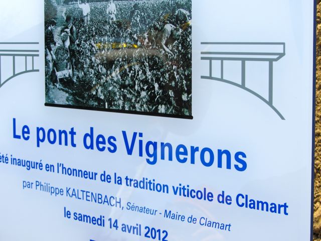Et le choix de l’ouvrage, qui enjambe les voies de la SNCF, ne doit rien au hasard : « Le pont et les vignerons de Clamart, c’est une vieille histoire! » sourit Michel Laroque, le grand maître de la confrérie. Né de leur colère quand fut creusée, au beau milieu de leurs vignobles, la tranchée du chemin de fer Paris-Versailles, le premier pont était une passerelle obtenue de haute lutte pour enjamber la voie. Les vignerons menaçaient de combler la tranchée et d’intercepter les trains.
