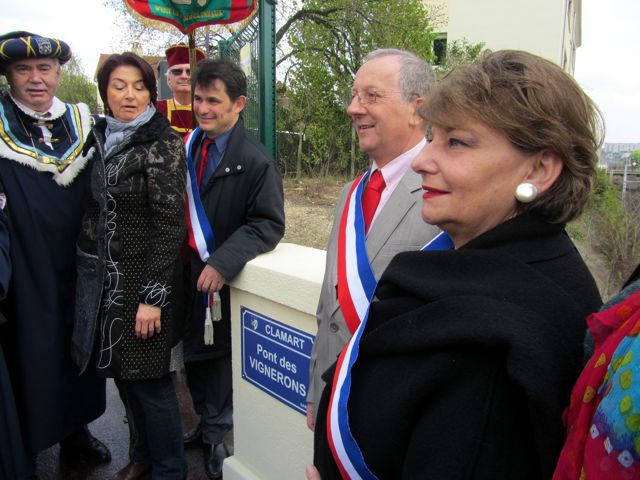 En effet ce samedi 14 avril a vu inaugurer en grandes pompes le pont qui depuis Issy-les-Moulineaux enjambe la tranchée de la voie ferrée Paris Versailles construite vers 1840. Ce pont, réclamé jadis par les viticulteurs et autres carriers qui se retrouvaient coupés de leurs lieux de travail, ne portait pas de nom, si ce n’est celui de la rue Brissard attenante.