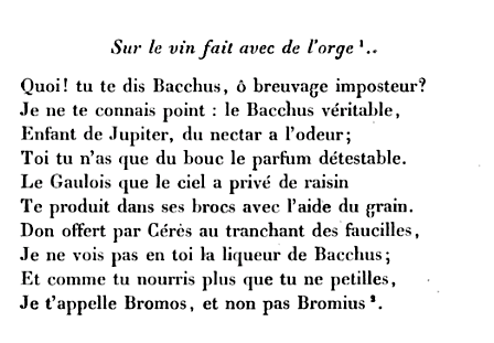 Avec un article intitulé « une mousse, sinon rien » la revue Books attire ces jours notre atttention sur le positionnement de cet antique breuvage par rapport au vin. Sa recette était connue par les sumériens 6000 ans avant notre ère, nous dit-on. Mais les romains la méprisaient, lui préférant le vin. L’empereur Julien, dit l’Apostat, connu pour avoir résidé à Lutèce, aurait consacré un poème dédié aux deux Dionysos, celui du vin et celui de l’orge.