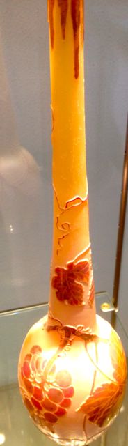 des vases de Legras (vers 1900), le quatrième maitre-verrier à la fondation de l’Art Nouveau, avec Daum, Gallé et Lalique. Cet homme s’est beaucoup intéressé aux bouteilles, voir à ce sujet l‘article du collectionneur Gérard Wagner.)