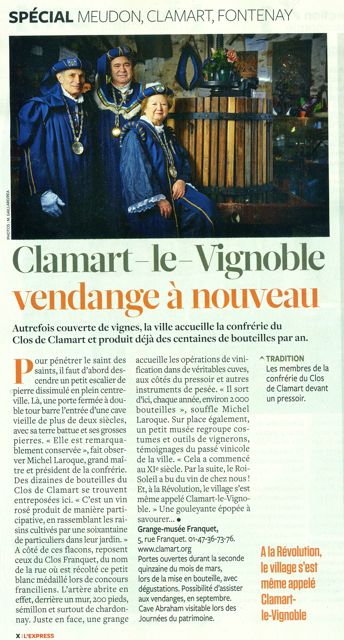 Après le Figaro, après le Parisien, voici l’Express qui a pris le chemin de la banlieue pour découvrir, ravi, la bonne ville de Clamart et son vignoble.