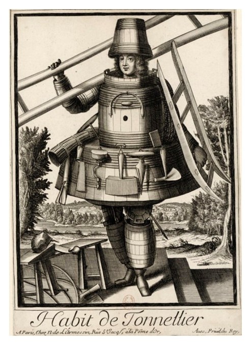 Vendangeur, tonnelier, cabaretier, vendeuse de raisin… voilà de vieux métiers que l’ouvrage les cris de la ville, de Massin (commerces ambulants et petits métiers de la rue, publié en 1978), nous donne à voir.