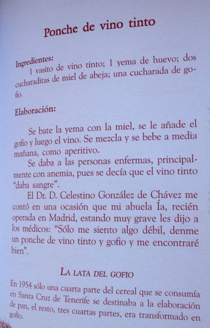 Une des spécialités de l’île est le gofio, sorte de farine de blé et de maïs torréfié au goût prononcé d’origine guanche (anciens habitants d’origine berbère des Canaries) , très populaire aussi en Amérique Latine.