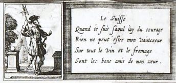 Le Suisse : Quand je suis saoul j’ai du courage Rien ne peut être mon vainqueur Surtout le vin et le fromage Sont les bons amis de mon coeur »