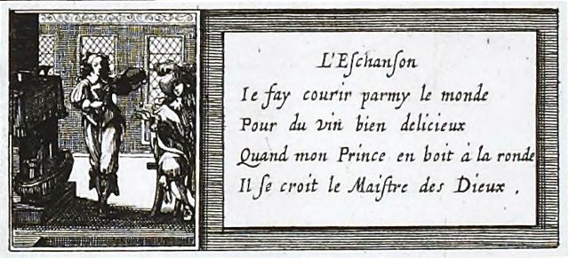 Et bien sûr l’Echanson : « Je fais courir parmi le monde Pour du vin bien délicieux Quand mon Prince en boit à la ronde Il se croit le maître des Dieux »