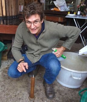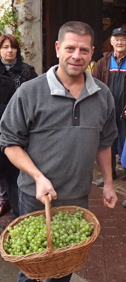Le résultat n’est pas fabuleux en maturité (9 degrés d’alcool potentiel pour le Franquet), mais on fera (et on a fait) avec, sous la houlette d’Edouard notre oenologue (ici mesurant le sucre au mustimètre).