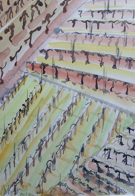 Voici quelques belles oeuvres trouvées sur le site de cette artiste de la région de Bordeaux, amie du Clos, qui pratique la gravure et la peinture. Celles-ci nous parlent des travaux de la vigne et des vendanges.