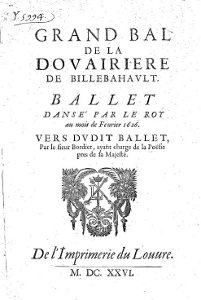 Nous l’avons trouvée mentionnée dans un ballet d’Antoine Boesset et René Bordier, donné en février 1626 pour le grand bal de la douairière de Billebahault,