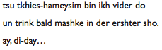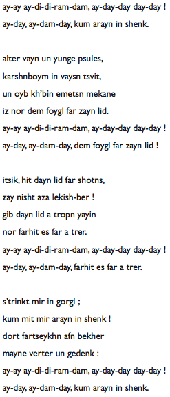 En voici quelques unes, en alphabet latin, avec la traduction de Yitzkhok Niborski,
