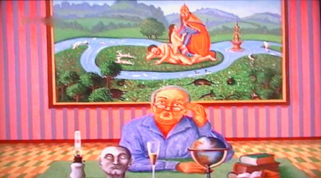 Voici deux tableaux présentés, après son décès, lors d’une exposition en 2007 (périlleusement extraits d’un DVD réalisé à cette occasion par Alain Braun et Alain Dassé pour le Grand Orient de France).