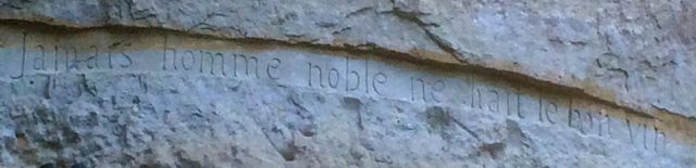 « jamais homme noble ne hait le bon vin« , à côté d’un relief de celui qui fit dire cet apophtegme monacal à frère Jean des Entommeures, j’ai nommé François Rabelais (1er livre chap 27).