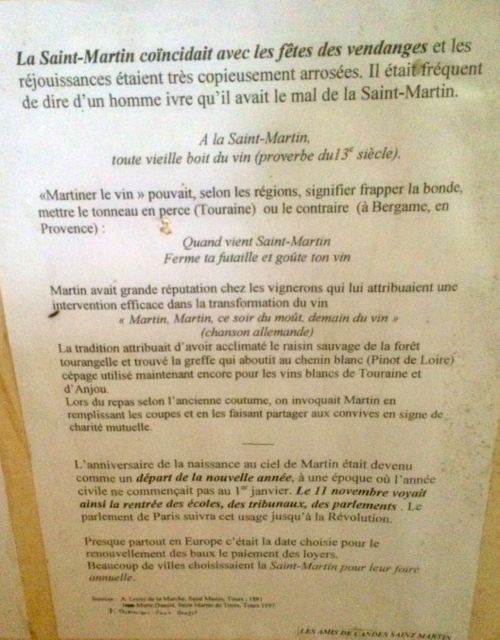 Un autre dicton (« quand vient la saint-martin ferme ta futaille et goûte ton vin« ) annonce que le vin a fini sa fermentation vers le onze novembre, et qu’on peut donc goûter ce vin nouveau. D’où des fêtes « copieusement arrosées ».