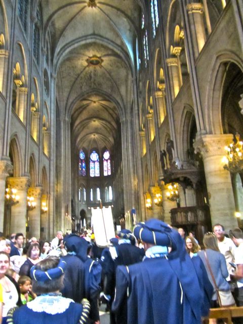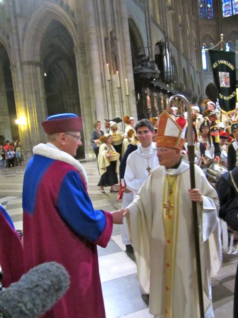 Courte Messe et long repas font la joie du chevalier, dit l’adage. Hélas ! La messe fut longue, il faut le dire, et de repas il n’y en eut guère, si ce n’est les brioches distribuées généreusement par les talmeliers d’ile de france qui avaient pris la précaution de les multiplier avant l’office.
