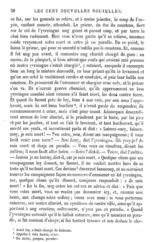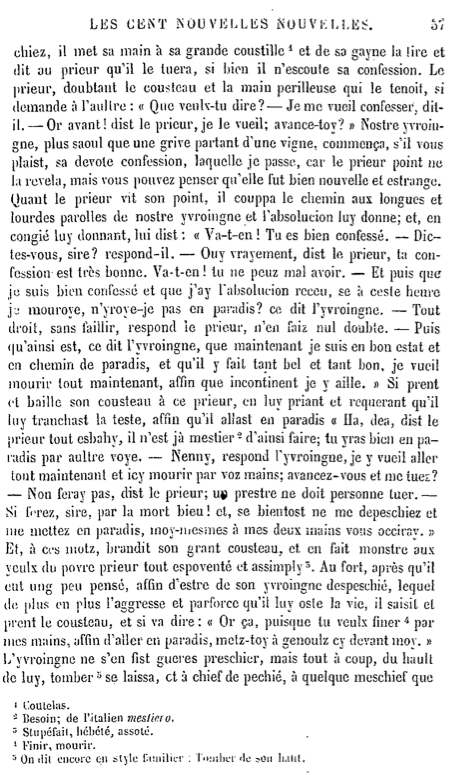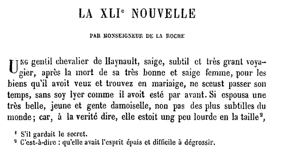 Les cent nouvelles nouvelles (aussi appelées cent nouvelles du roi Louis XI) ont été commandées par le duc de Bourgogne Philippe le Bon, qui reçut le manuscrit en 1462. Ce sont cent histoires drolatiques, attribuées à des auteurs divers, et largement inspirées du Décaméron de Boccace paru un siècle plus tôt. On trouvera la version intégrale sur Gallica (édition de 1858).