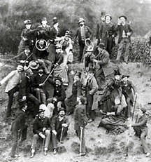 Les Incohérents à Clamart en 1884, photo publiée dans la Gazette des Beaux-Arts par Philippe-Robert Jones en 1958.