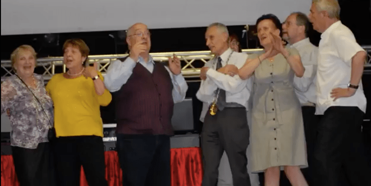 une chorale improvisée animée par Lulu de Saint Ouen chante « c’est un mauvais garçon »