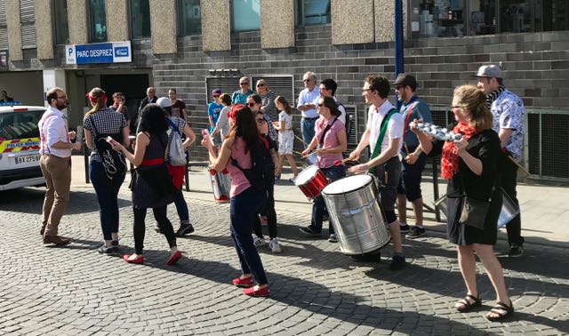 une chorale improvisée animée par Lulu de Saint Ouen chante « c’est un mauvais garçon »
