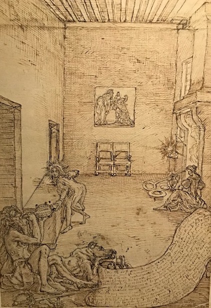 Curieux personnage que ce Georges Focus , peintre, dessinateur, membre de l’Académie Royale de Peinture et de Sculpture, sous Louis XIV, à qui les Beaux Arts de Paris consacrent une exposition actuellement. Il finit, aliéné, aux Petites Maisons, où il eut une importante production mettant en scène ses délires et souvenirs.