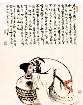 Li Bai eut une vie mouvementée, une légende veut « qu’ayant essayé de se tenir debout sur l’un des côtés de sa barque, après avoir bu plus que de raison, il ne fut pas assez ferme sur ses pieds, tomba dans l’eau et se noya. »