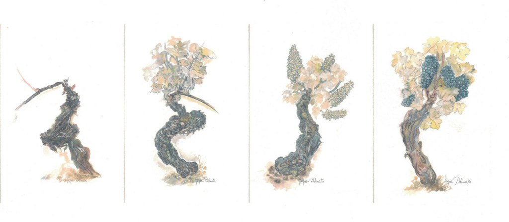Il y a aussi ces 4 ceps, de Joyce Delimata (encre de chine et lavis), une artiste qui vit en Bourgogne et s’intéresse au vin….