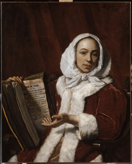 La femme au livre, de Bartholomeus Van der Helst (Haarlem, vers1598-1670) présente un poème de Jan Vos, un ami du peintre.