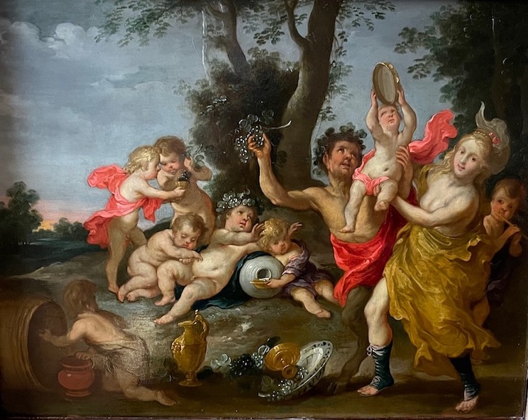 Un peu plus loin, nombreuses peintures hollandaises et flamandes ; voici une scène bachique du peintre liégeois Gérard de Lairesse (1641-1711)