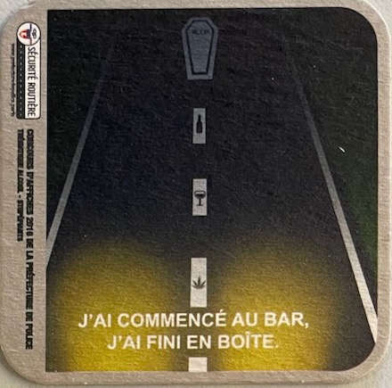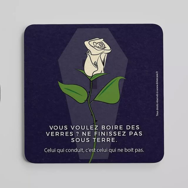 Voici quelques autres sous-verres trouvés sur drivecase.fr, site qui « propose des solutions innovantes pour une prévention de la mobilité efficace et impactante auprès des entreprises, collectivités, associations et autres organismes sensibles aux risques routiers. »