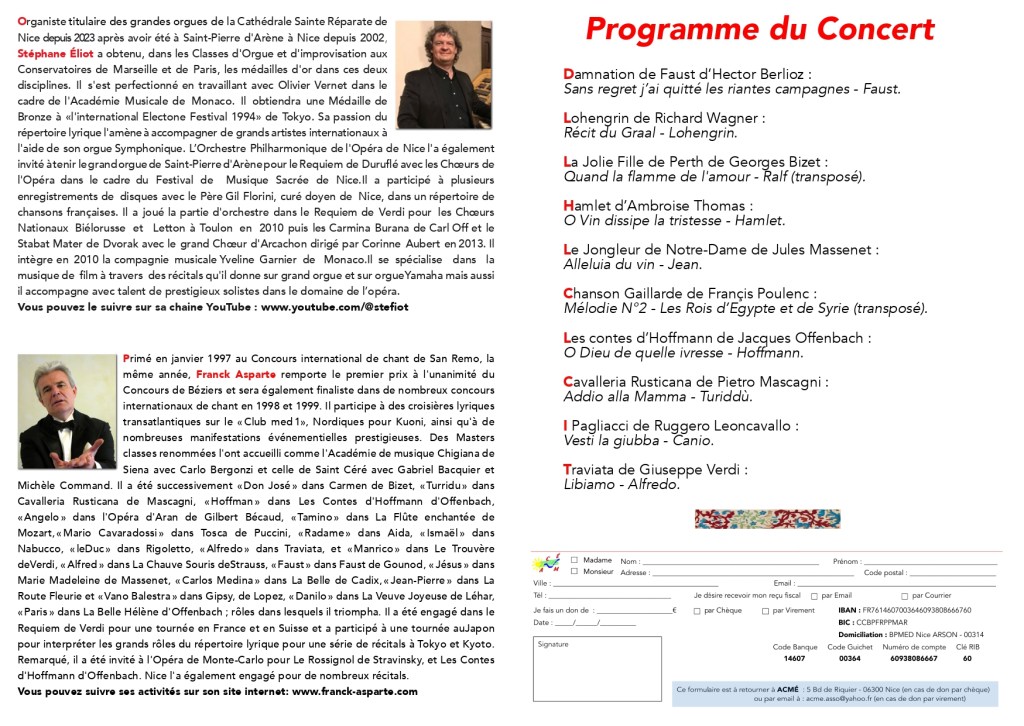 Au programme : une dizaine d’airs lyriques, chantés par le ténor Franck Asparte, tenor « Lirico spinto », accompagné à l’orgue symphonique par Stéphane Eliot, tous deux des « figures » à la carrière internationale.