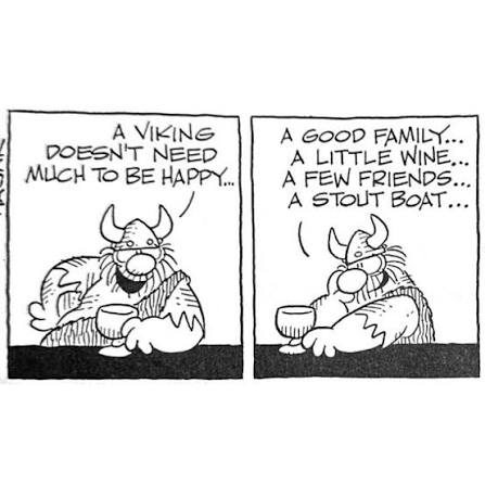 Un Viking n’a pas besoin de grand chose pour être heureux… Une bonne famille, un peu de vin, quelques amis… et un bateau plein de bière…