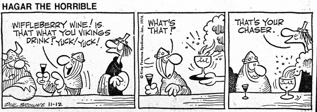 – Du vin de wiffleberry ! c’est ça que boivent les Vikings ? – C’est quoi, ça ? -C’est ton digestif.