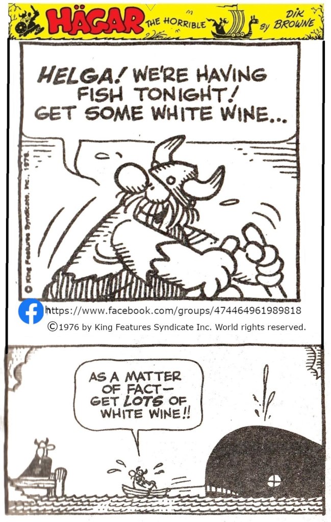 Helga, il y a du poisson ce soir, apporte du vin blanc… En fait, beaucoup de blanc !!