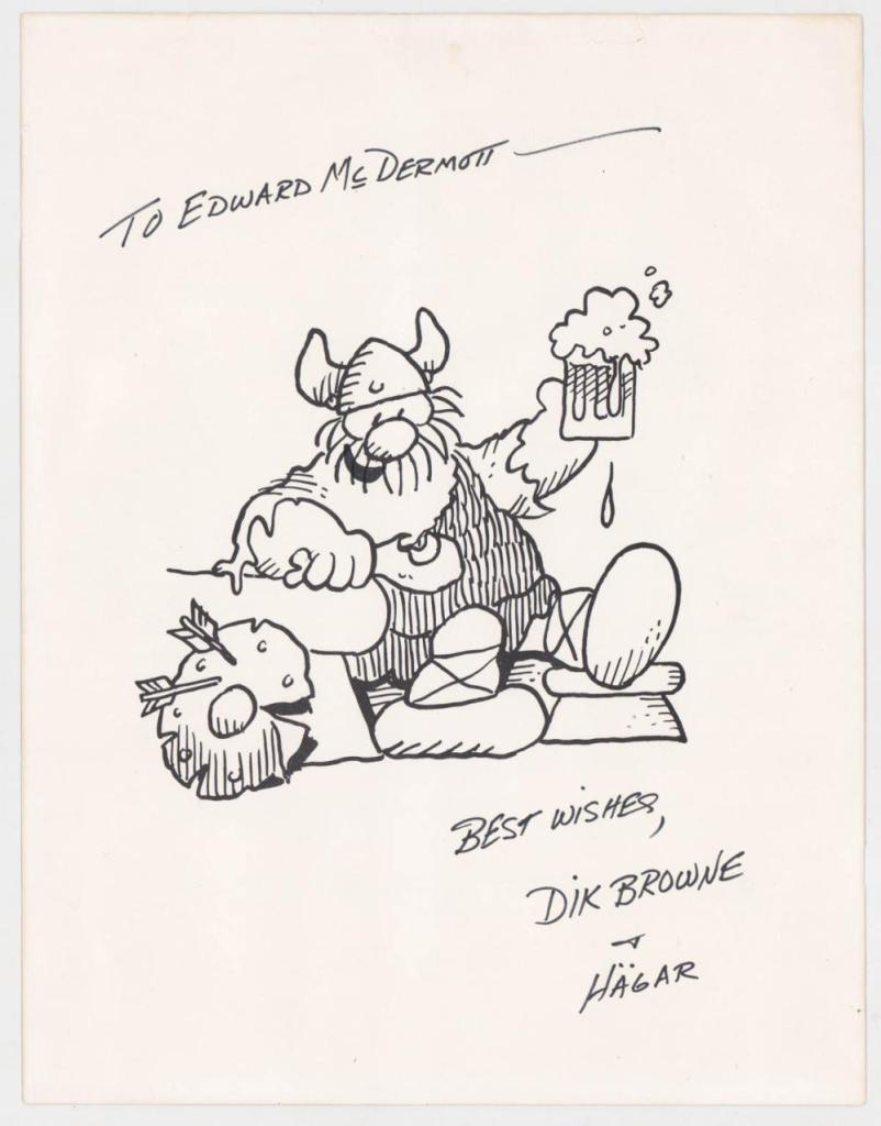 Voici un personnage inspiré des Vikings qui a été créé en 1973 par le « cartoonist » américain Richard Arthur Allan Browne, alias Dik Browne (1917-1989). Il avait 56 ans et une vie d’illustrateur derrière lui.