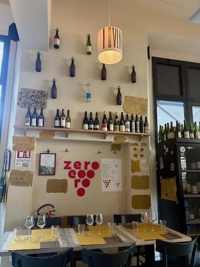 Les bouteilles peuvent être bues sur place ou à emporter (les 2 prix sont sur les bouteilles), la cuisine est du patron (tenter le « Pancia di maiale, anacardi e cavolo cappuccio »), et -10% à qui laisse son téléphone sous la cloche pendant le repas.