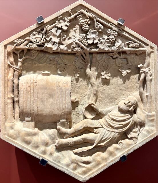 Dans une toute autre veine, voici l’ivresse impudique de Noé par Andrea Pisano (vers 1343) sculpteur, orfevre, architecte…