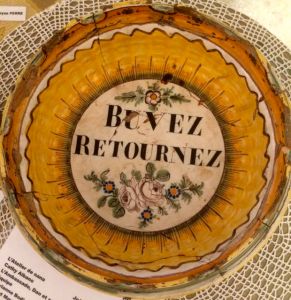 Le cavalier juché sur ce tonnelet de faïence nous dit en vers : « Je veux boire jusqu’à demain/ puisque je suis le dieu du vin/ et tant que mon tonneau durera/ monsieur Rivin en boira »