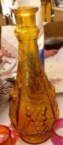 Voici une bouteille de vin en faïence de Nevers représentant une bacchanale (vers 1680)