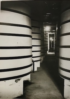 Dans ces foudres de Cognac, les eaux-de-vie attendent le filtrage (1930, auteur inconnu)