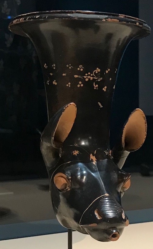 Ce rhyton à tête de mulet, percé, permettait de boire à la régalade (IVème siècle av. J.C., Attique)