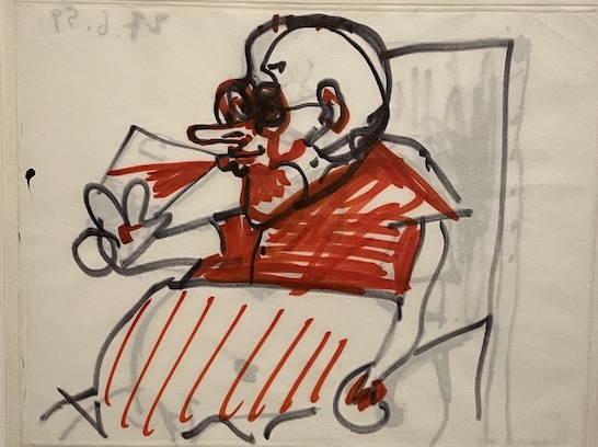 Georges Wolinski n’était pas de cette génération. Grand dessinateur au destin tragique lui aussi, il nous fait toujours sourire. Voici un dessin vu aux Beaux Arts de Paris où il y a actuellement une exposition en son hommage.