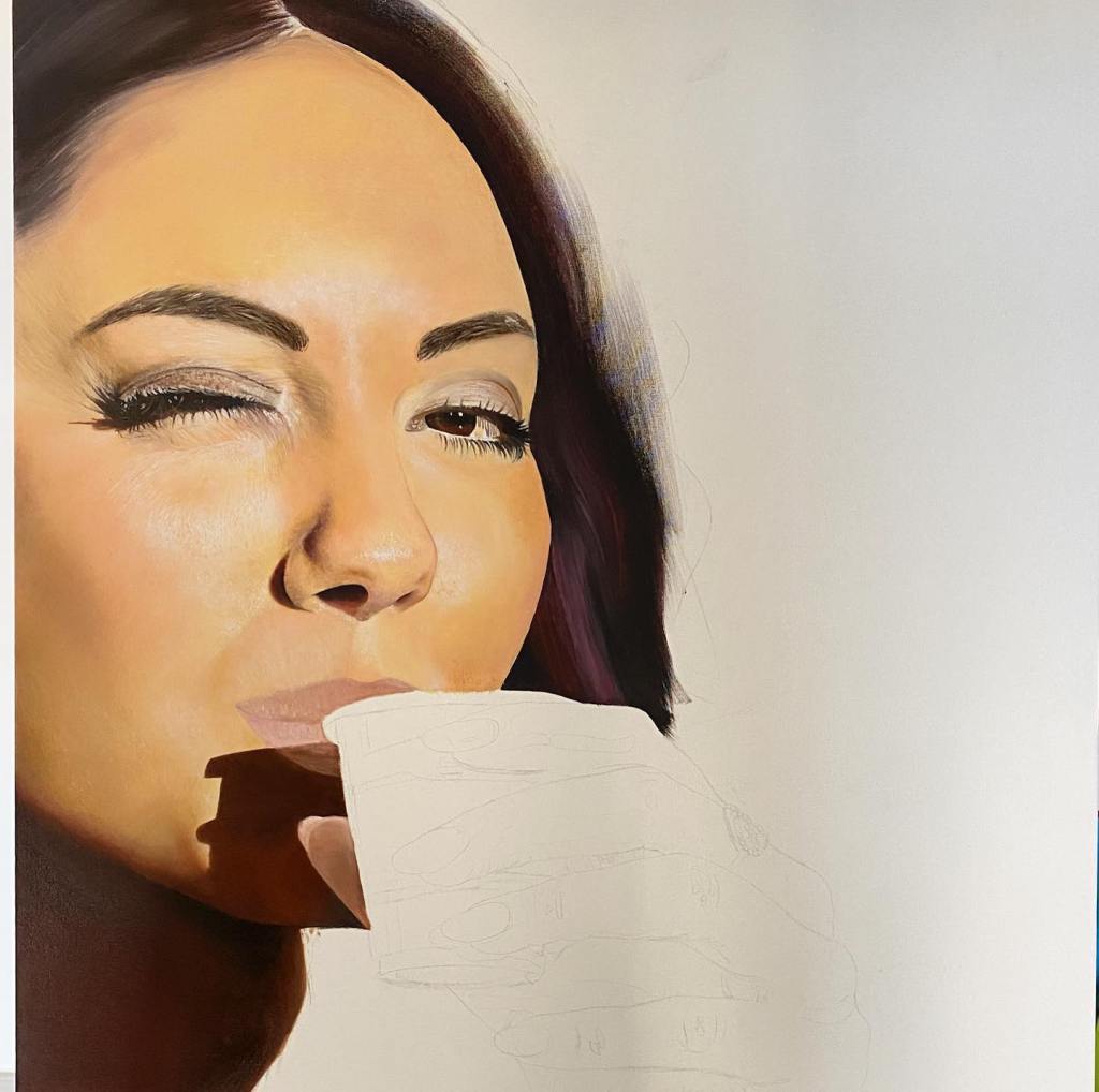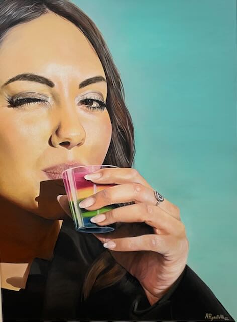 Françoise Minet, portraitiste belge, était là elle aussi. Ce tableau a retenu notre attention.