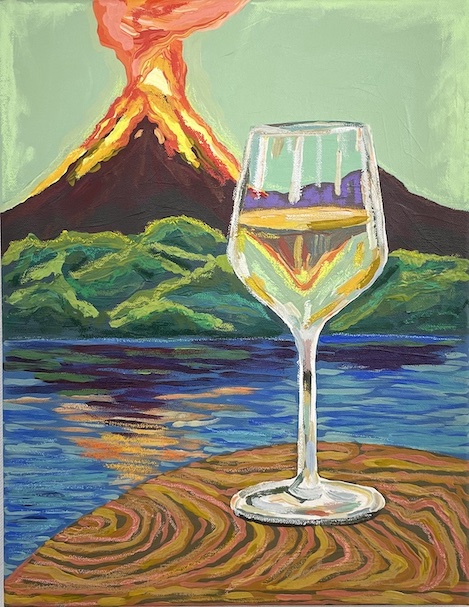 L’américaine Brittany Faning, qui a longtemps vécu en Corée, pointe la coexistence du plaisir et du danger avec ce « Pinot Gris et volcan »