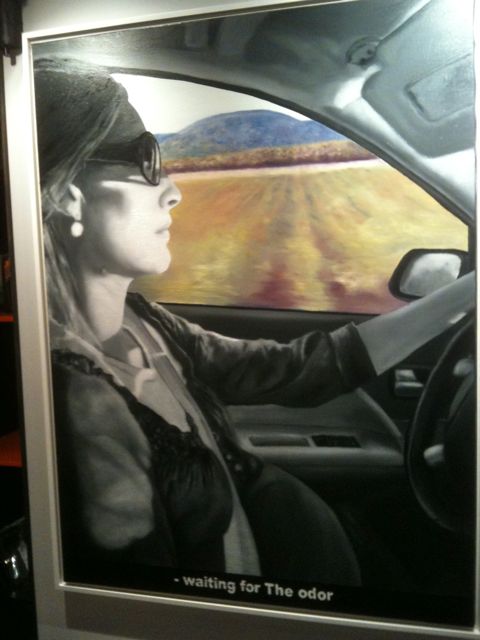 femme conduisant dans un paysage de vignes : on est ici bien loin du « modèle » invoqué (Boticelli).