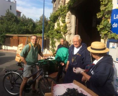 Avec un été qui s’éternise, c’est une récolte exceptionnelle qui était attendue par la petite équipe de vignerons amateurs réunis autour du Président et Grand-Maître Marcel au pressoir municipal rue Pierre Franquet. Ce fut le cas.
