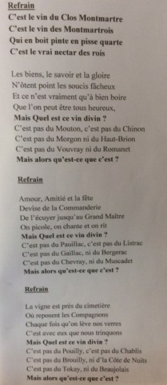 3. Grand-maître officiers chevaliers tastevins il faut ce jour chanter Saint-Vincent et bon vin