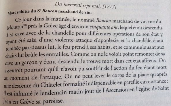 Et voici un autre événement survenu l’année précédente, en 1777. La mort subite d’un marchand de vin de cinquante ans, victime d’une « attaque d’apoplexie » (on dirait aujourd’hui un AVC).