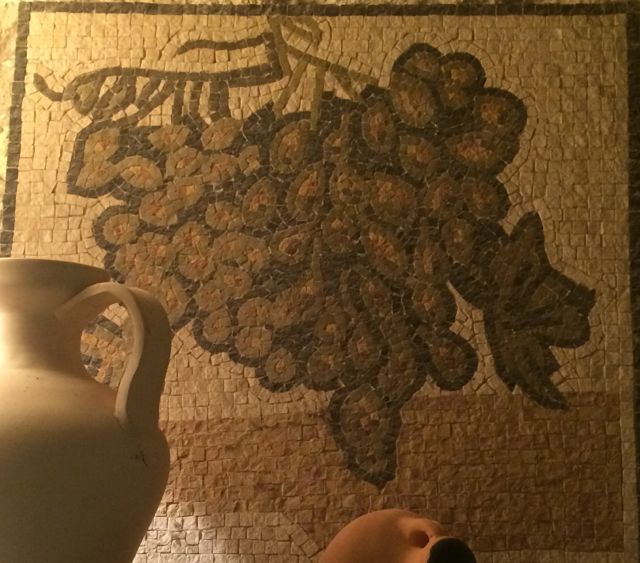 Trois vins sont produits chaque année au Mas des Tourelles dans de grandes « dolia ». Un mulsum (vin mêlé de miel et autres aromates), un turicullae, (notre préféré) vin blanc sec au curieux arôme de curry, réalisé par adjonction au moût de fenugrec et d’eau de mer ! et un carenum, vin doux réalisé par adjonction de vin cuit réduit dans le moût.